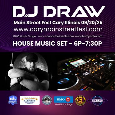 DJ Draw will be playing a 1.5 hour House Set at the Cary Main Street Festival on September 20th 2025. BMO Harris Stage